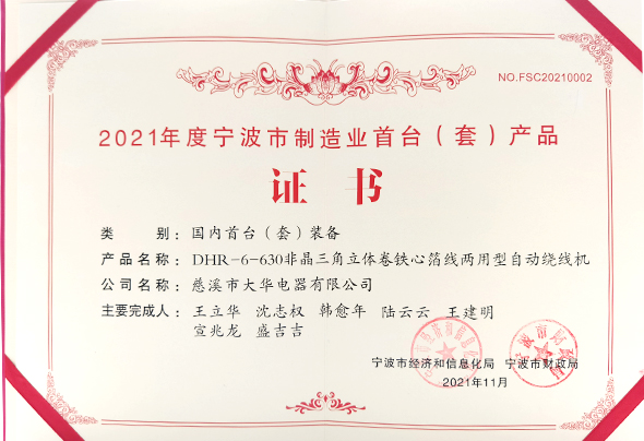 慈溪市k8凯发有限公司创建于二OO一年十一月,位于杭州湾跨海大桥南岸所在地浙江省慈溪市庵东镇工业园区纬二路699号,公司主要生产拥有自主知识产权的箔绕机、非晶自排线绕线机、非晶铁芯装配台、三角立体卷铁芯箔绕机、三角立体卷铁芯(自排线)卧绕机、三角立体卷铁芯开片机、铁芯卷绕机、箔带两用型绕线机、带料拼箔式绕线机等产品。目前,箔绕机产销量居国内同行首位。公司针对同行业中普遍存在的缺陷,进行大胆创新,实现了箔绕机原理上的重大突破,独创了“箔绕全程不偏,箔带两用,带料拼箔”的全新技术,使设备性能得到了极大的提升,本公司DHR-4型箔绕机曾创下8小时绕制30个箔式线圈的记录。